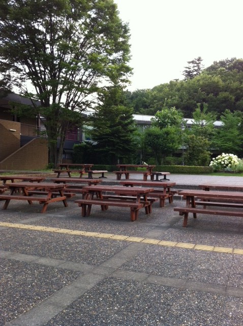 ピクニックしてる気分でランチができたり、課題やりながらアイス食べながらお友達とお喋り!