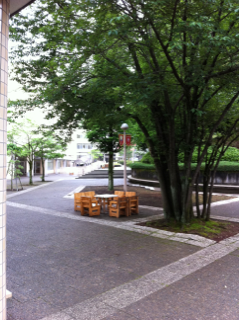 春は桜の木がたくさんで、桜の下でランチしたりしてます。