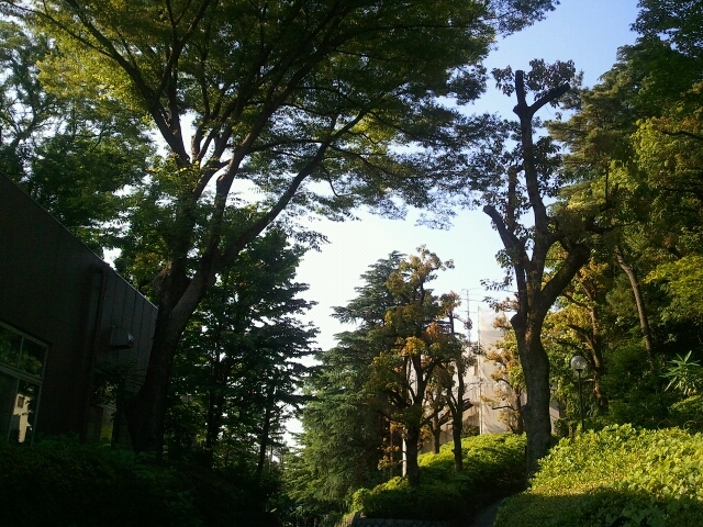 食堂の前から見えるこの自然! 木漏れ日がいい感じです。