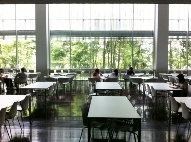 大きな窓からはいつも緑を感じながらお昼を食べることができます(^^)