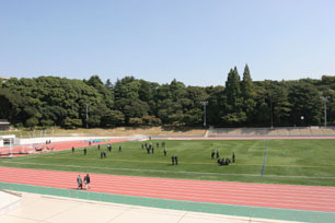 グラウンドは、キャンパスのすぐ隣にあるのにまた別の雰囲気があって緑が多く、芝生の上に座ってゆっくりすると、